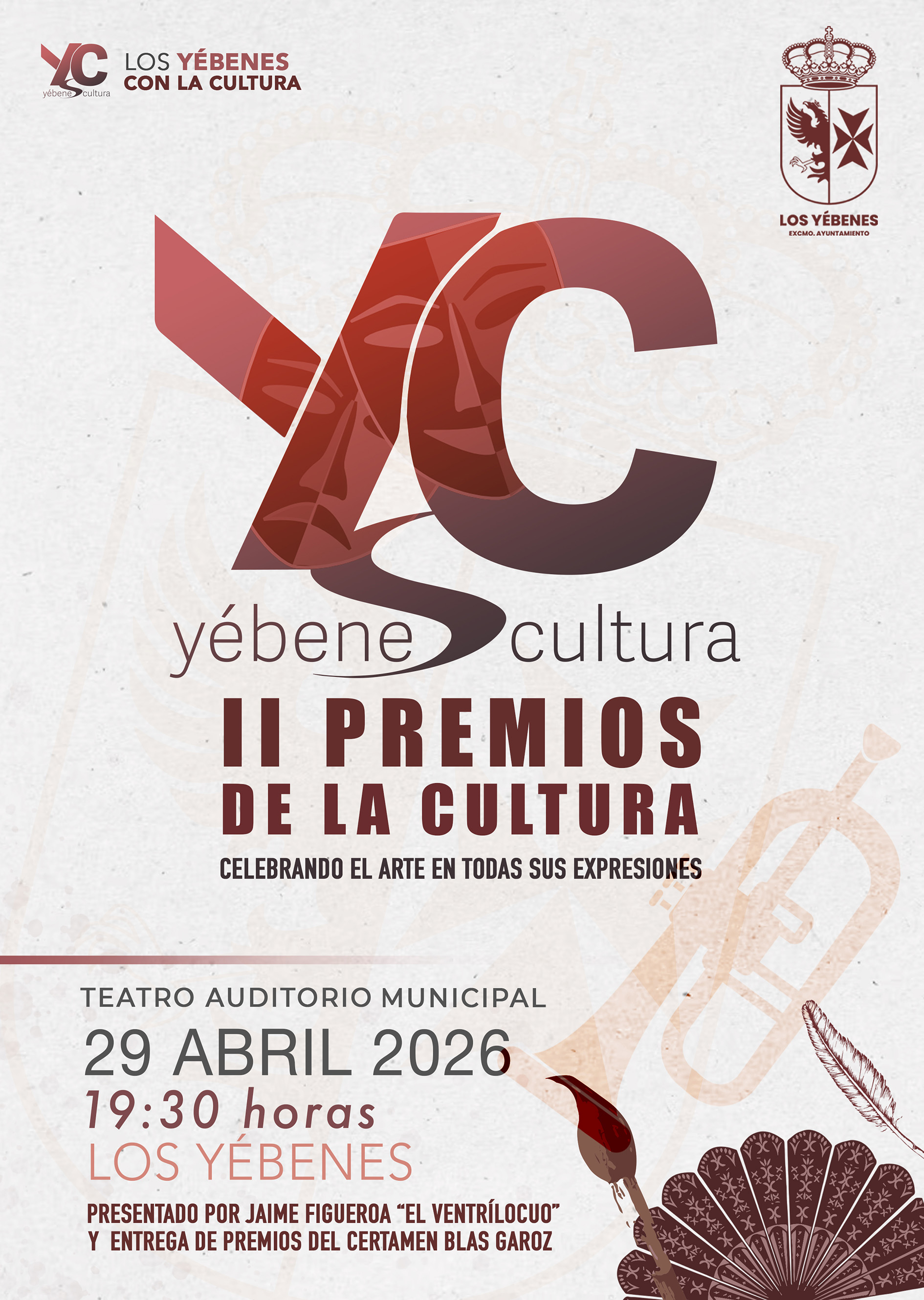 La gala, presentada por Jaime Figueroa, conocido como El Ventrílocuo, reunirá a vecinos, artistas y representantes de la vida cultural local en una ceremonia que aspira a consolidarse como el gran encuentro anual de la cultura yebenosa. Los premios reconocerán la trayectoria y el trabajo de personas y asociaciones del municipio en distintas disciplinas artísticas y culturales.